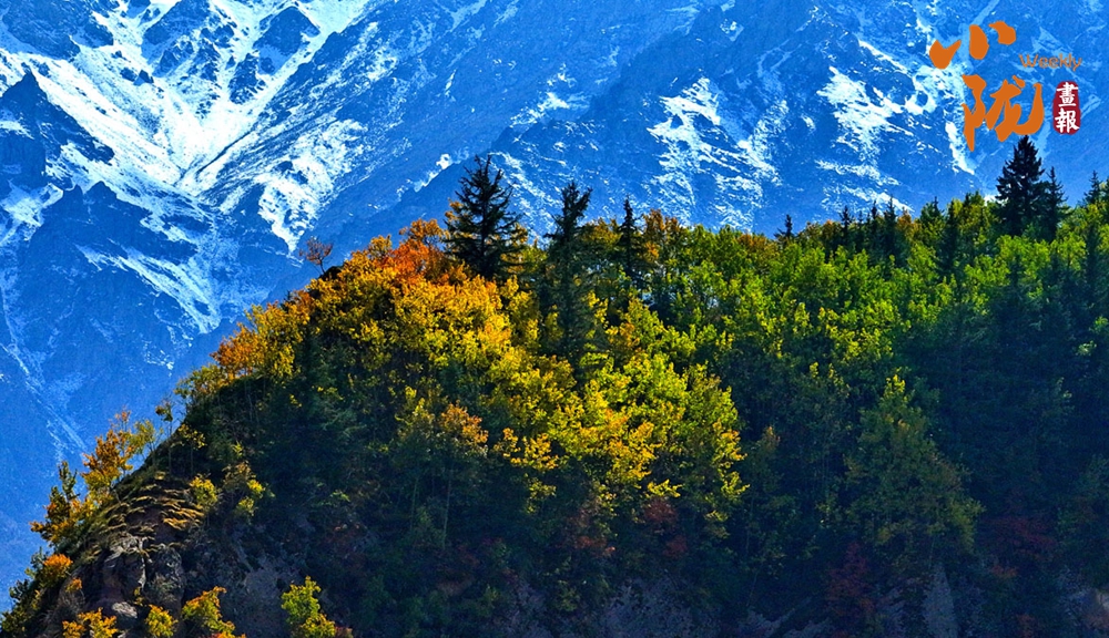 秋風吹過,祁連山的原始森林悄然換裝。黃綠交織,紅金點染,仿佛大自然執(zhí)筆揮灑的油畫,靜謐而熱烈。尤其是在陽光的照耀下,與遠處的雪山和湛藍的天空、潔白的云朵,形成鮮明的對比。