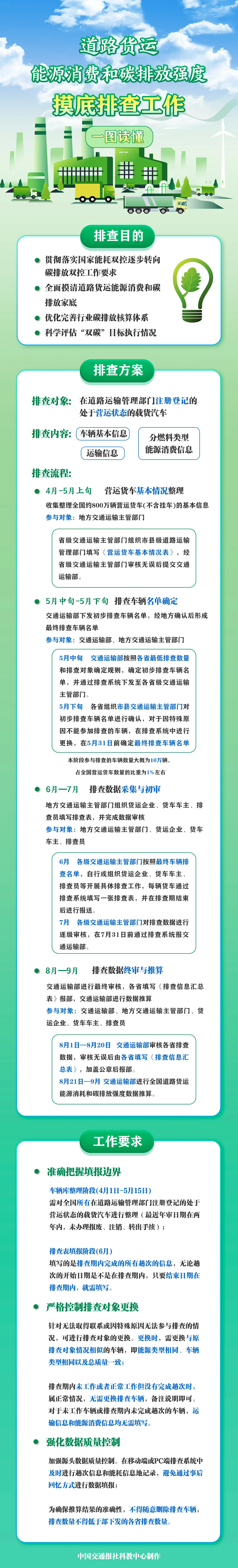 4月1日,交通運(yùn)輸部啟動(dòng)全國道路貨運(yùn)能源消費(fèi)和碳排放強(qiáng)度摸底排查工作。