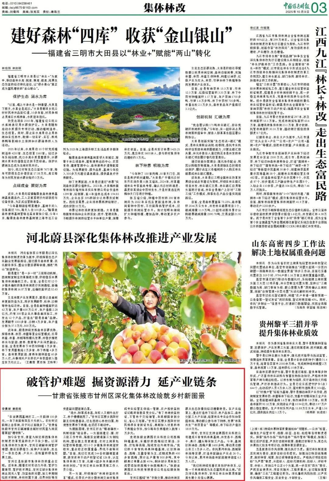 如今在甘州,像查九妹這樣因集體林權(quán)制度改革受益的農(nóng)戶不在少數(shù)。以深化集體林改為抓手,甘州區(qū)破解林地管護(hù)難題、激活資源潛力、延伸產(chǎn)業(yè)鏈條,走出了一條生態(tài)美、產(chǎn)業(yè)興、百姓富的綠色發(fā)展之路。