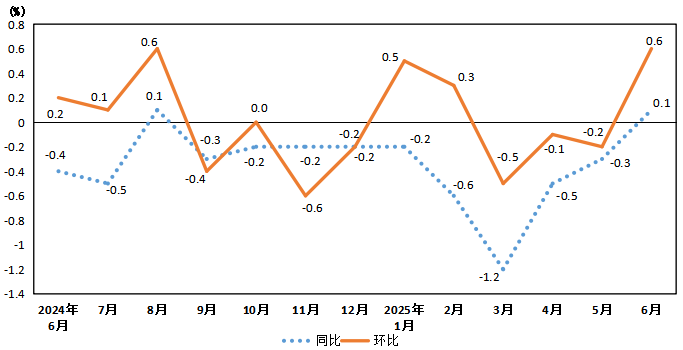2025年6月份,張掖居民消費(fèi)價(jià)格同比上漲0.1%。其中,食品價(jià)格上漲1.2%,非食品價(jià)格下降0.1%;消費(fèi)品價(jià)格上漲0.1%,服務(wù)價(jià)格上漲0.2%。