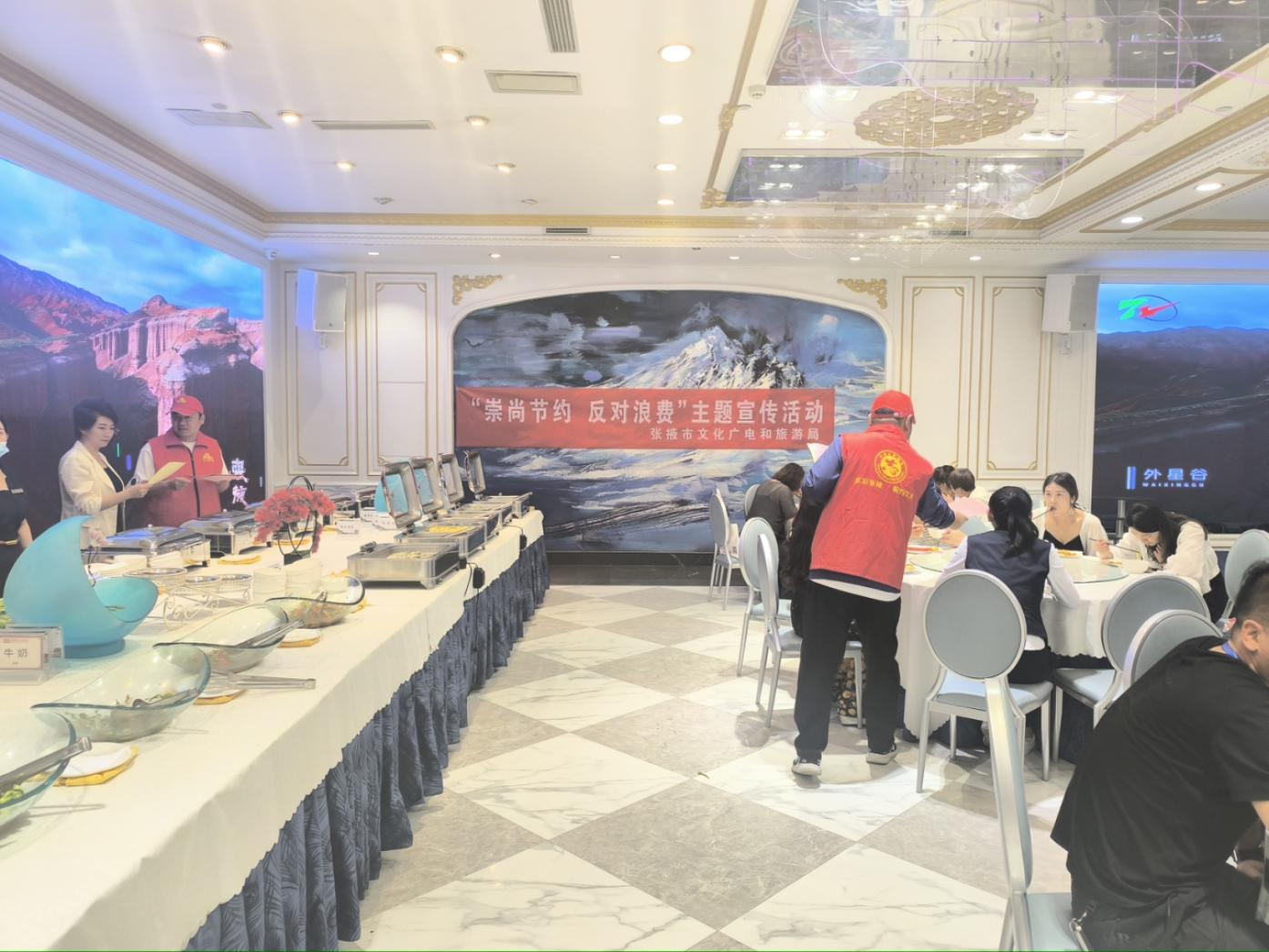 為認(rèn)真貫徹落實(shí)習(xí)近平總書(shū)記對(duì)制止餐飲浪費(fèi)行為作出的重要指示,倡導(dǎo)全社會(huì)養(yǎng)成勤儉節(jié)約的良好品德,營(yíng)造文明、節(jié)約、綠色、環(huán)保的文明城市氛圍,2025年6月24日,市文廣旅游局在張掖新城大酒店開(kāi)展了“崇尚節(jié)約 反對(duì)浪費(fèi)”主題宣傳進(jìn)酒店活動(dòng)。