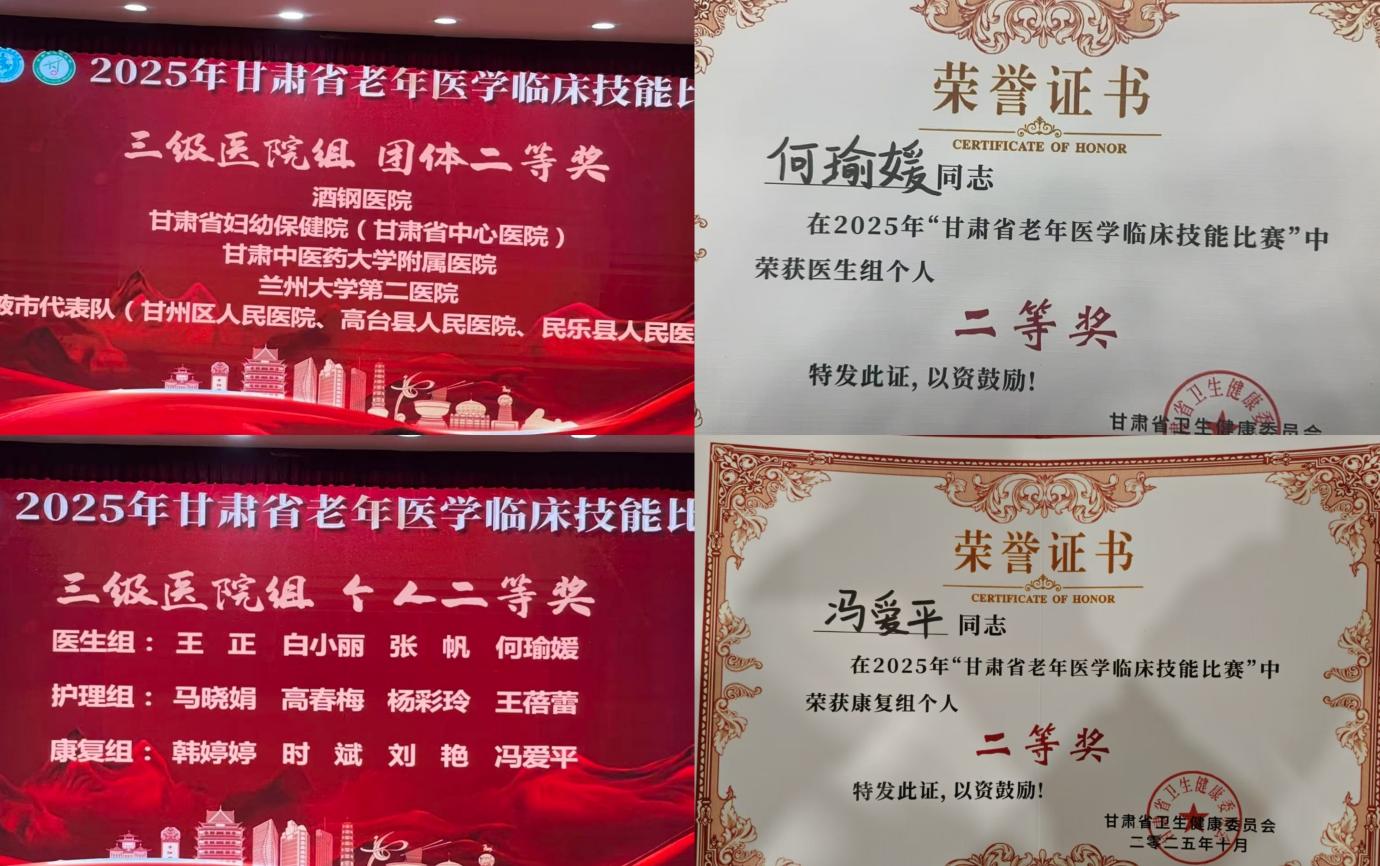 此次比賽旨在通過(guò)以賽促學(xué)、以賽促練的方式,提升老年醫(yī)學(xué)醫(yī)護(hù)專業(yè)能力,推動(dòng)學(xué)科規(guī)范化發(fā)展,助力人才隊(duì)伍建設(shè),從而更好地滿足老齡化背景下老年群體多樣化、多層次的醫(yī)療健康需求。由河西學(xué)院附屬?gòu)堃慈嗣襻t(yī)院老年醫(yī)學(xué)科副主任醫(yī)師何瑜媛、張掖市第二人民醫(yī)院康復(fù)專業(yè)馮愛平、張掖市中醫(yī)醫(yī)院主管護(hù)師何曉晶組成的張掖市代表隊(duì),經(jīng)激烈角逐,不僅斬獲團(tuán)體二等獎(jiǎng),何瑜媛、馮愛平還分別榮獲三級(jí)醫(yī)院醫(yī)生組、康復(fù)組二等獎(jiǎng),充分彰顯了張掖市老年醫(yī)學(xué)專業(yè)人才培養(yǎng)的扎實(shí)成效。