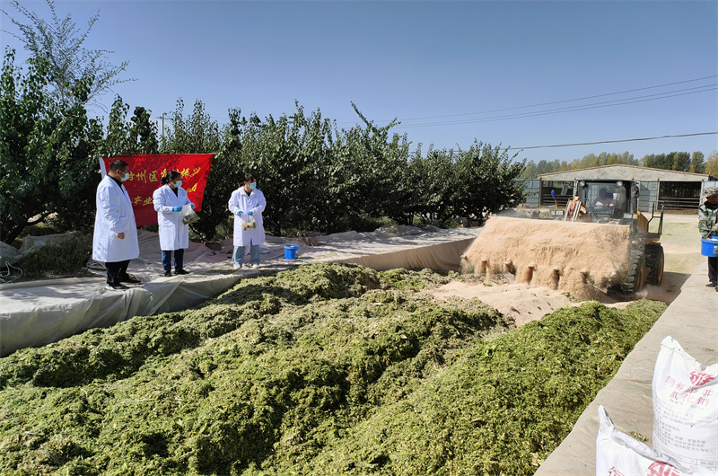 在甘浚鎮(zhèn)山速農(nóng)民養(yǎng)殖專業(yè)合作社,專家服務(wù)團(tuán)成員結(jié)合當(dāng)前肉牛養(yǎng)殖周期特點,針對養(yǎng)殖過程中常見的飼料配比不合理、圈舍環(huán)境調(diào)控不到位、應(yīng)激反應(yīng)處理不及時等問題,通過現(xiàn)場示范、案例分析的方式,手把手傳授科學(xué)養(yǎng)殖技巧,幫助合作社直觀掌握實用技術(shù)。同時,現(xiàn)場對青貯玉米的制作進(jìn)行了技術(shù)指導(dǎo),并進(jìn)行了現(xiàn)場采樣,后續(xù)將進(jìn)行玉米赤霉烯酮、嘔吐毒素、黃曲霉毒素等項目檢測。