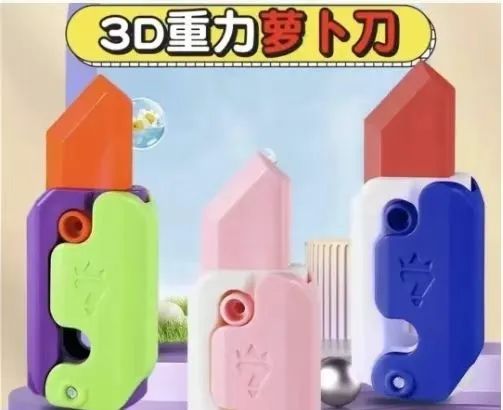 蘿卜刀,是一款利用重力滑動(dòng)的塑料仿刀玩具,外形類似于一個(gè)迷你版的胡蘿卜。由于蘿卜刀可以像刀一樣捅出去且學(xué)生扎堆“玩刀”,對(duì)于年齡較小還沒(méi)形成安全意識(shí)的學(xué)生來(lái)說(shuō),可能會(huì)對(duì)孩子的心理造成一定影響。因?yàn)楹⒆觽兿矚g模仿動(dòng)畫片里的畫面,拿著玩具刀做刺、捅、戳等動(dòng)作,可能會(huì)從潛意識(shí)里激發(fā)孩子的暴力傾向,增加了他們拿到真刀時(shí)做出同樣舉動(dòng)的風(fēng)險(xiǎn)。且蘿卜刀實(shí)實(shí)在在地存在一定安全隱患,有人通過(guò)試驗(yàn)發(fā)現(xiàn),有的蘿卜刀雖是塑料材質(zhì),但是尖頭處很硬,稍微用力便能插破白紙、扎入蘋果。孩子們?cè)谕嫠r(shí)如果不注意力道,或者奔跑追逐時(shí)不慎摔倒,容易傷到眼睛等身體脆弱部位。