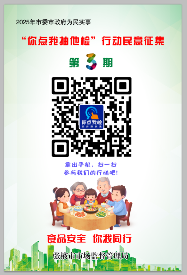 為有效回應(yīng)群眾對(duì)食品安全問題的關(guān)切,進(jìn)一步提升食品安全抽檢工作的靶向性和科學(xué)性,按照市委市政府為民實(shí)事工作安排,即日起組織開展第三期食品安全“你點(diǎn)我抽他檢”行動(dòng),于2025年8月2日至2025年8月31日期間進(jìn)行民意征集。