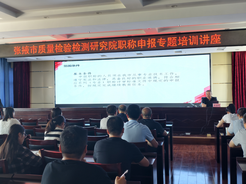 為進(jìn)一步加強(qiáng)專業(yè)技術(shù)人才隊伍建設(shè),提升我院專業(yè)技術(shù)人員對職稱申報政策的理解和把握,提高申報質(zhì)量和效率,6月11日,張掖市質(zhì)量檢驗檢測研究院精心籌備并開展了一場干貨滿滿的職稱申報專題培訓(xùn)講座,全院專業(yè)技術(shù)人員齊聚一堂,共赴這場知識盛宴,現(xiàn)場學(xué)習(xí)氛圍濃厚。