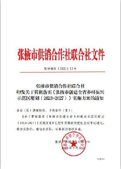 供銷合作社是黨領(lǐng)導(dǎo)下的為農(nóng)服務(wù)的綜合性合作經(jīng)濟(jì)組織,是實(shí)施鄉(xiāng)村振興戰(zhàn)略,推動(dòng)農(nóng)業(yè)農(nóng)村現(xiàn)代化的重要力量。為認(rèn)真貫徹落實(shí)《張掖市創(chuàng)建全省鄉(xiāng)村振興示范區(qū)規(guī)劃(2023-2027)》和市委、市政府關(guān)于推進(jìn)“一高地四區(qū)”建設(shè)的部署要求,持續(xù)深化供銷社綜合改革,著力發(fā)揮好供銷社助力鄉(xiāng)村振興的獨(dú)特優(yōu)勢(shì),現(xiàn)制定如下實(shí)施方案。