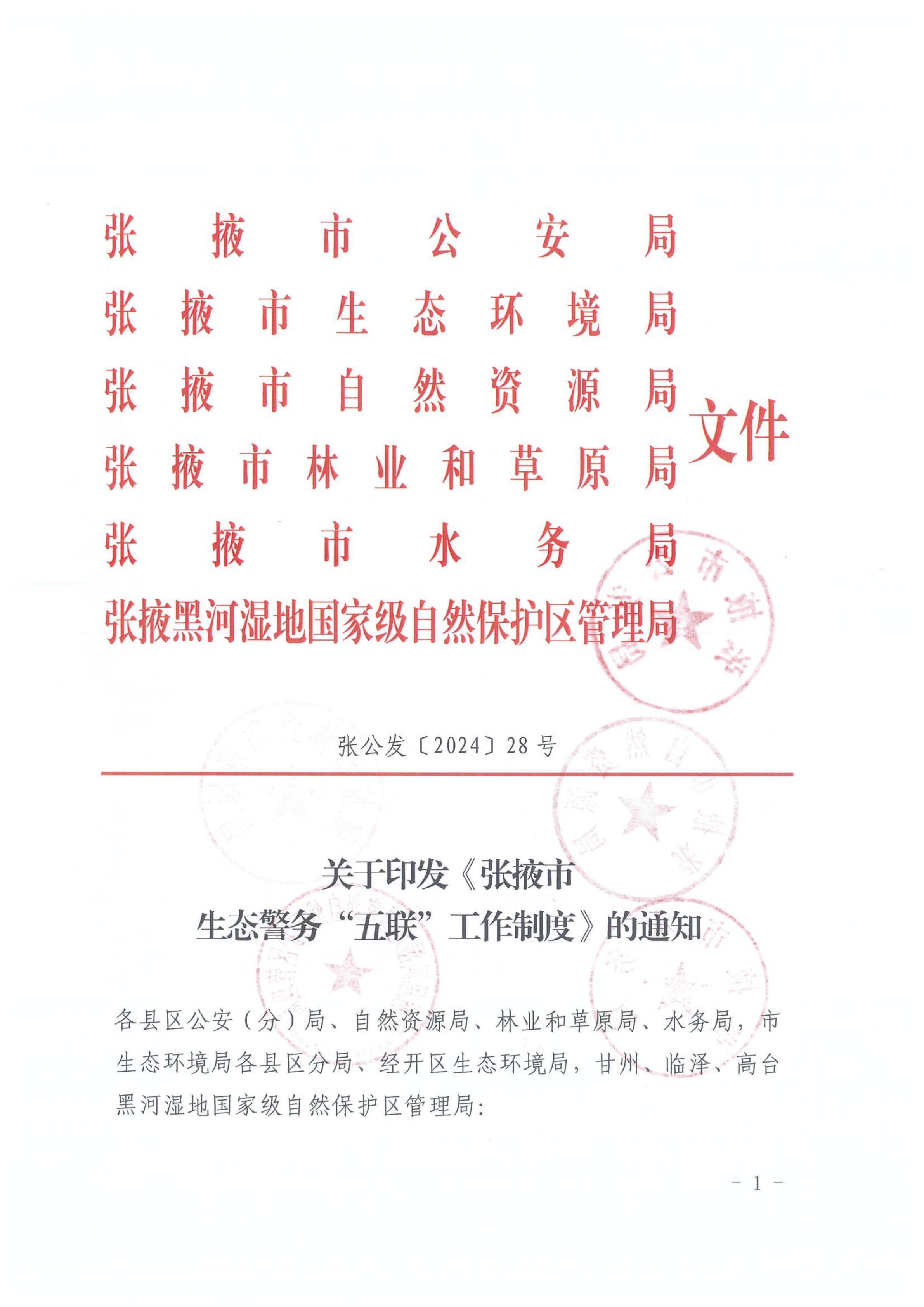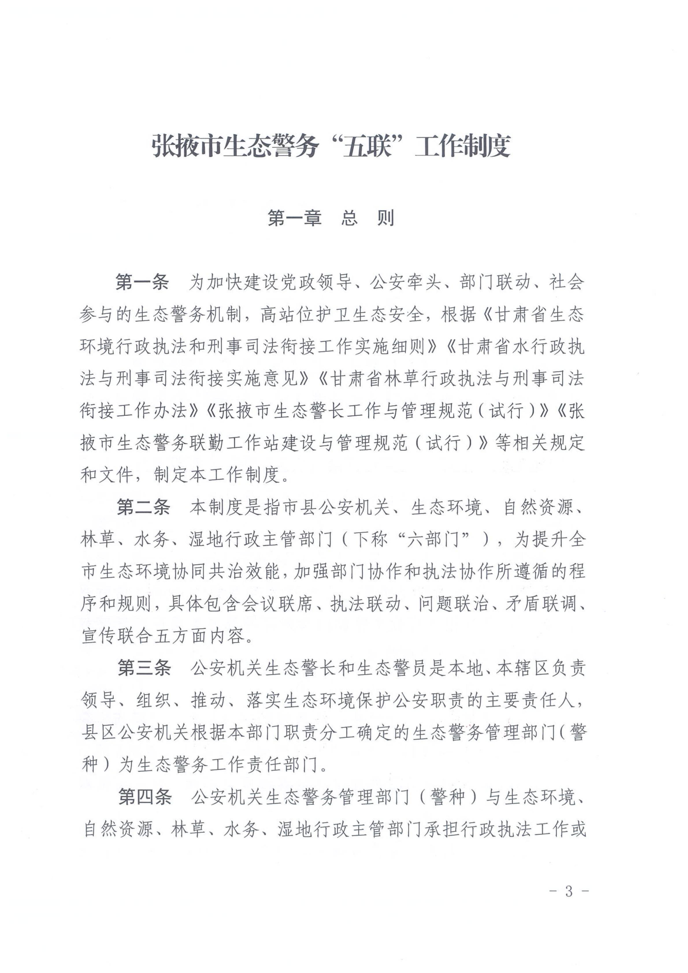 關(guān)于《張掖市生態(tài)警務(wù)“五聯(lián)”工作制度》 中涉及濕地管理內(nèi)容的政策解讀