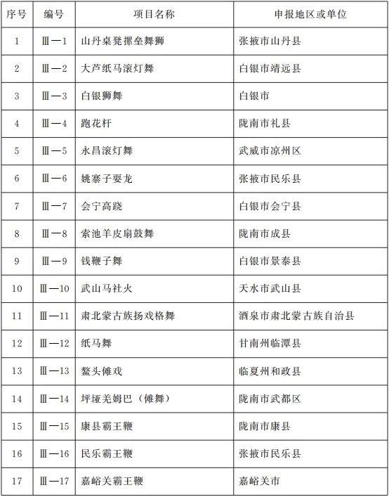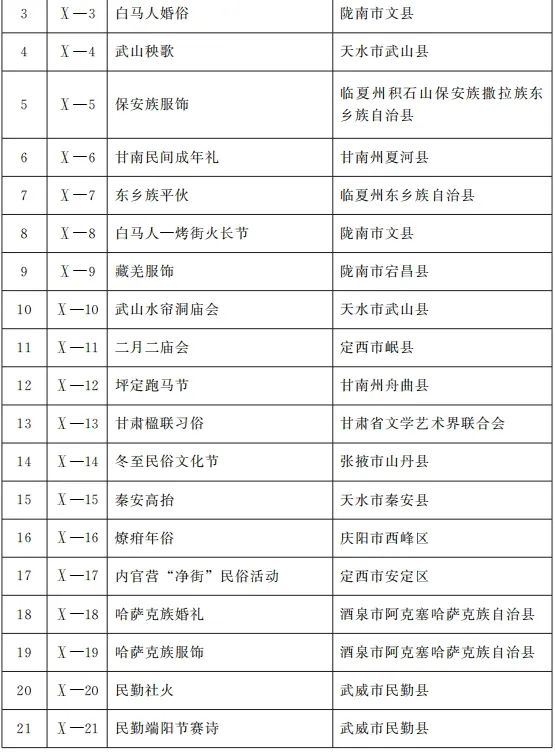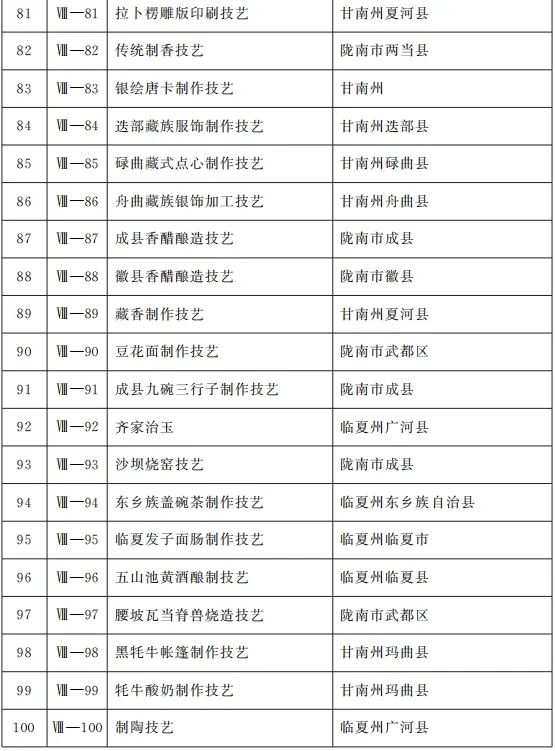 甘肅省第五批省級(jí)非物質(zhì)文化遺產(chǎn)代表性項(xiàng)目名錄(共計(jì)285項(xiàng))