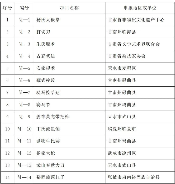 ????六、傳統(tǒng)體育、游藝與雜技(共計(jì)20項(xiàng))
