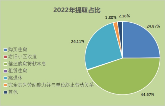 中心及時優(yōu)化調(diào)整住房公積金政策措施,將租住商品房的提取額度由每月不超過600元提高到1000元,全力保障無房職工“住有所居”。開通了部分提取公積金還貸業(yè)務(wù),出臺了因化解“登記難”問題首次取得《不動產(chǎn)權(quán)證書》、共有產(chǎn)權(quán)住房和“隴原人才卡”持卡人提取政策措施。提取金額中,住房消費類提取的占比較大,《報告》顯示,2022年全市2.54萬名繳存職工提取住房公積金,提取額9.71億元,同比增長14.19%。住房消費類提取6.78億元,占總提取額的69.85%,其中:購房提取占24.87%,償還購房貸款本息占44.67% ,租賃住房占0.25%,支持老舊小區(qū)改造占0.06%,住房公積金在支持繳存職工解決住房問題方面得到了充分運用。