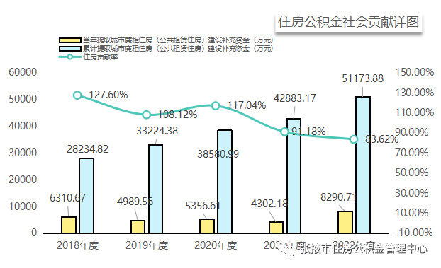 2022年,中心業(yè)務(wù)收入19149.18萬元,同比增長32.76%,住房貢獻(xiàn)率(個人住房貸款發(fā)放額、公轉(zhuǎn)商貼息貸款發(fā)放額、項目貸款發(fā)放額、住房消費提取額的總和與當(dāng)年繳存額的比率)為 83.62%。提取城市廉租住房(公共租賃住房)建設(shè)補充資金8290.71萬元,已累計提取51173.88萬元。