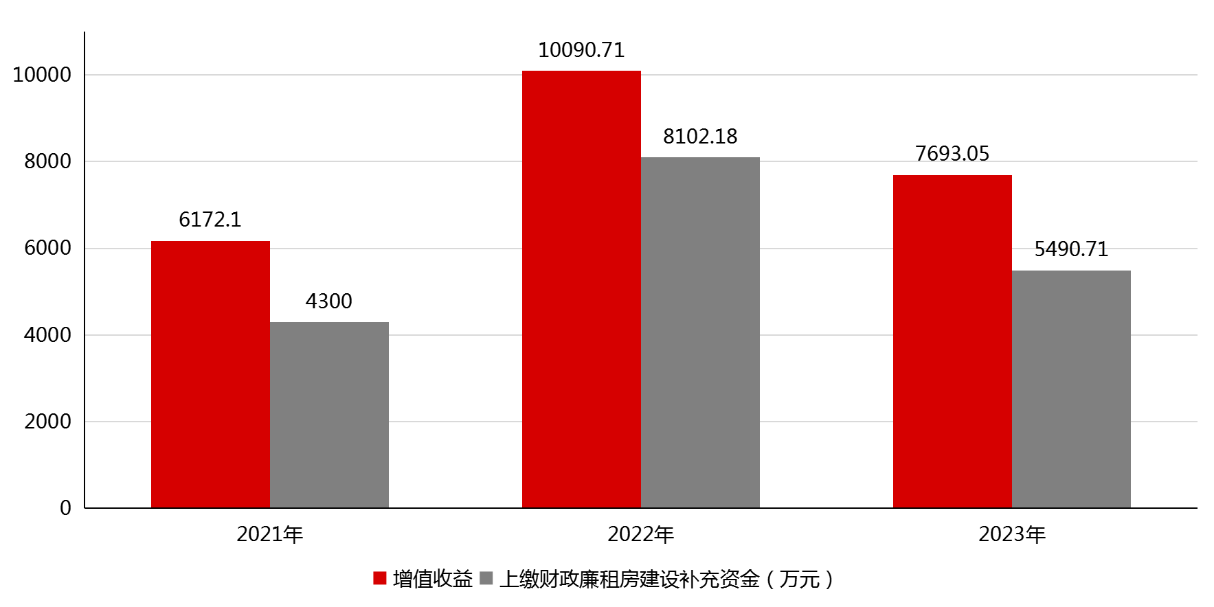 堅持安全責任重于泰山,始終繃緊資金安全這根弦,創(chuàng)新完善公積金運行制度體系,2023年,先后修訂完善了《內部控制基本制度》等八項制度,切實靠制度規(guī)范公積金管理行為,在確保住房公積金運行安全的前提下,實現社會效益和經濟效益最大化。全年業(yè)務收入17303.98萬元,實現增值收益7693.05萬元,增值收益率1.28%,實現了住房公積金保值增值。全年提取城市廉租住房(公共租賃住房)建設補充資金5793.05萬元,上繳城市廉租住房(公共租賃住房)建設補充資金5490.71萬元,為全市保障性住房建設提供了有力資金支持。
