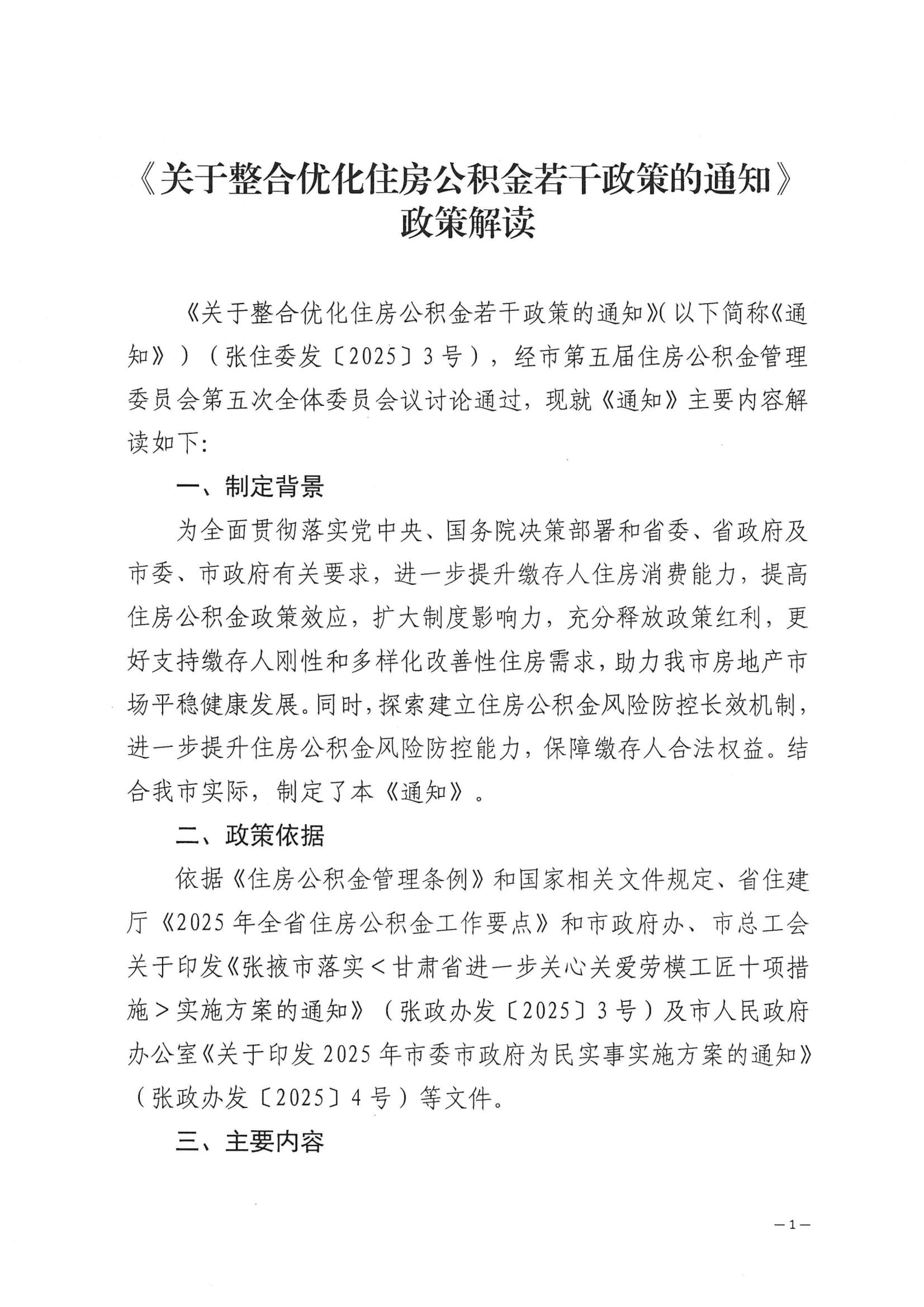 張掖市住房公積金管理委員會關于整合優(yōu)化住房公積金若干政策的通知